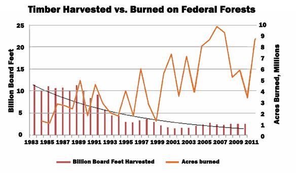 Timber Harvested vs. Burned on Federal Forests
